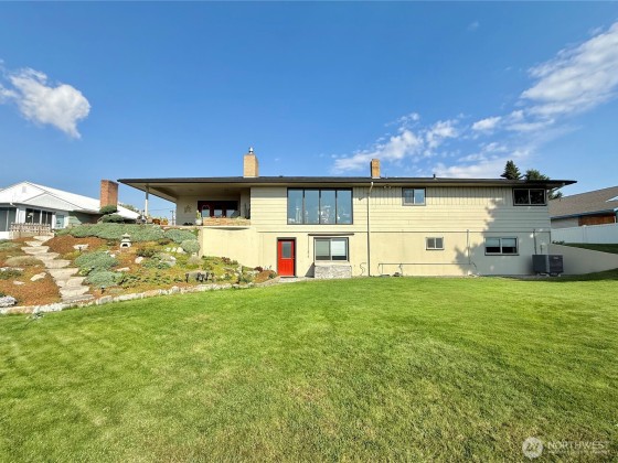 Omak-Stampede Grounds & River View! Stunning 3441sqft 3+bed/1.5 bath on almost 1acre w/irrigation! Mid-century modern fts incl tiled entryway, intercom/AM radio throughout home, dining room, kitchen w/acrylic counters, linoleum floors, osmosis water filtration system & breakfast nook, living room w/gas fireplace & beautiful stone feature, backdoor w/big windows leading to back yard, laundry room w/half bath, bedroom w/bamboo flooring, oversized full bath, and two additional bedrooms. Lower-level daylight basement contains finished bedroom or additional rec room, unfinished bathroom & bedroom, and additional space to create your own vision! Round about driveway & meticulously cared for yard. OID & City Utilities $474,900 MLS-2439575/H-3721