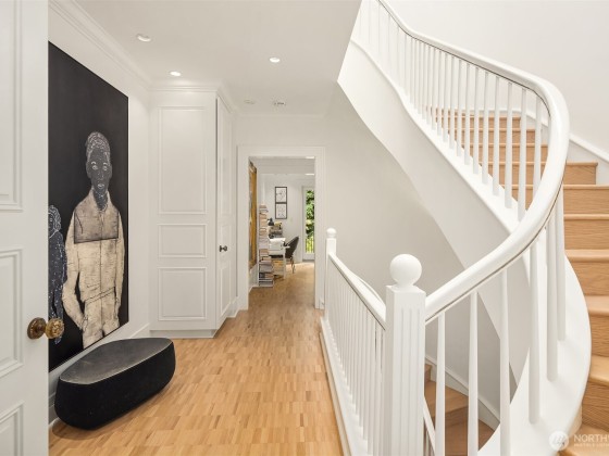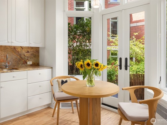 Private elevator in this sophisticated home from 2 personal parking spaces to top level. Timeless Merrill Court mirrors the best of London townhomes w/ stunning park-like setting in highly desirable Harvard-Belmont Historic District. Excellent flow w/ thoughtful floor plan & generous scale, 9 and 10 ft ceilings, fresh finishes & modern, European flavor. All levels flooded w/ natural light. Gorgeous oak floors, gourmet kitchen: slab marble & SubZero, Miele, Zephyr appliances. Great formal rooms ideal for entertaining & art. LR Terrace, kitchen terrace & two balconies. Expansive primary bedroom suite, dressing room, beautiful bathroom. Two 3rd flr bedrooms, one features large TV room. Oversized windows take in private outlook & City views.