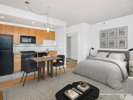 Located in the quiet fringe of Belltown, a quick walk to Queen Anne, the Sculpture Park, Space Needle, Climate Pledge, Myrtle Edwards Park, Burke-Gilman Trail & all that the waterfront has to offer. This very well-managed buildings amenities include a 24/7 concierge, 2 guest suites, outdoor patio, club room with kitchen, exercise room, hot tub, private storage unit in the garage, and caged bicycle parking. Private EV charge share included with the parking space, plus community-shared EV charging in the garage. This studio is open & flooded with natural light. Leave the car at home and skip the traffic jam, stroll to the offices of Amazon, Expedia or Google all while enjoying a cup of your favorite joe. With a walkscore of 96 life is easy!