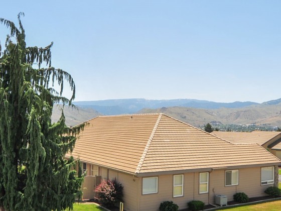 ENJOY EASY LIVING IN AMBERCREST! Coveted one level, 2 bedroom plus office/den, 2 bath condo with southern exposure and great territorial views that include Mission Ridge. Enjoy beautiful hardwood floors in an open floor plan that is filled with natural light. The large kitchen has gorgeous cabinets, eating bar and pantry. Spacious primary suite includes a walk-in closet, light & bright bath with double sinks, walk-in shower and vanity area. The perfectly located private deck allows for pleasant outdoor living. Complete with attached 2 car garage.