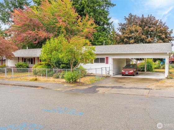One level home w/ 3 beds, 1.5 baths, and about 2000 sf ready for new owners' vision. As you enter, large living room invites you in and flows into the kitchen. Plenty of cabinets and counter space for all your cooking needs, plus huge BONUS ROOM off the kitchen w/ woodstove and slider to bkyd. All 3 bedrooms are located at the end of the hall, next to the full bathroom. Convenient half-bath opens to one bedroom and the laundry room. Original Hardwood flooring in most of the home! Fully-fenced lot w/ mature landscaping offers room to add a garden or any personal touch. SHOP in the back has power/lights and is insulated w/ 2nd floor storage. Covered patio perfect for summer entertaining. Oversized Carport and RV parking on the side! NO HOA.