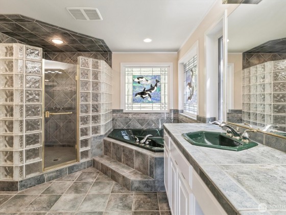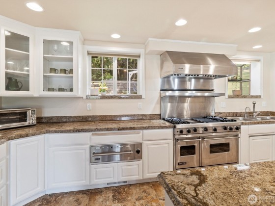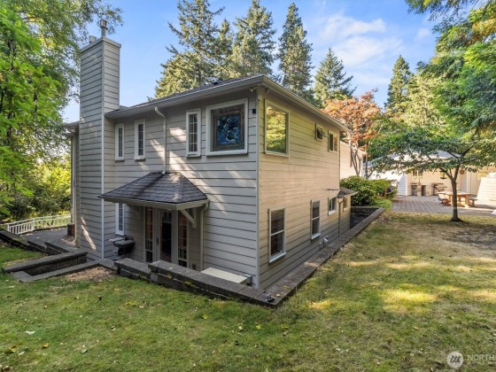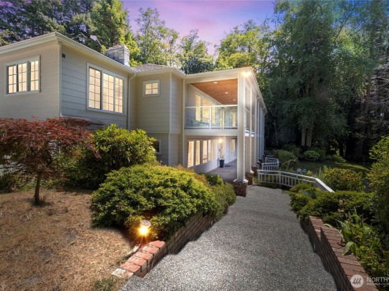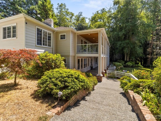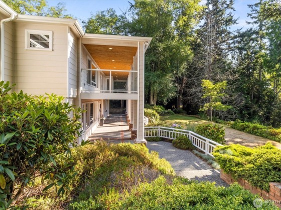 Set on nearly 3.5 acres of wooded privacy, this custom home offers unique custom details such as fir floors, stained glass, and built-ins in every room and generous storage throughout. A Viking range and warming drawer anchor the kitchen and dining area. Four fireplaces create inviting spaces for gathering. The five-car garage includes a mechanic’s pit—ideal for hobbyists—plus RV or boat parking with 220V. Outdoor living features covered deck, terraced patios, and lawn areas for gardening or play. Deeded access to three private waterfront areas—Alexander Beach, Telegraph Bight, and the dock at Biz Point—with moorage buoys. A rare property with possible subdivision for up to two additional homesites—buyer to verify. Pre-inspected.
