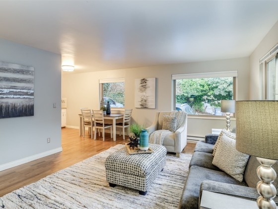 Set amongst the sunny southern slopes of Queen Anne & multi-million dollar homes is your boutique mid-century condo. Bhy Kracke Park is virtually your backyard & you are perfectly located between upper & lower Queen Anne with everything right out your doorstep - Shopping, dining & multiple commuting options. Newly refinished hardwood floors welcome you to your wide-open living room with large corner picture windows. Light & bright kitchen with full-size appliances, dedicated off-street parking, low HOA Dues, storage unit & on-site laundry.