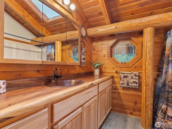 PRIME Location on 1.6 Acres in the Heart of Woodinville! Nestled just minutes from Wine Country, This charming LOG home offers the perfect blend of Rustic Character & Modern Updates. Thoughtfully Remodeled Kitchen shines w/a 6-burner Wolf range, Granite counters,2 Lazy Susans, Custom lighting, Generous Breakfast bar, Newer Flooring & Gorgeous Etched Entry Door. The Soaring ceilings & Great room design create an airy, open feel, plus an office/den. Updated Main Bath w/New Flooring, New Cabinet, New Countertop, New Sink & Fixtures! ATTENTION Hobbyists, Collectors, or Car Enthusiasts, this property is a true DREAM: massive 48 x 30 garage/shop w/ loft and storage, PLUS an additional 20 x 16 garage/shop with attached Carport. Room for RV & MORE!
