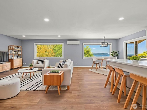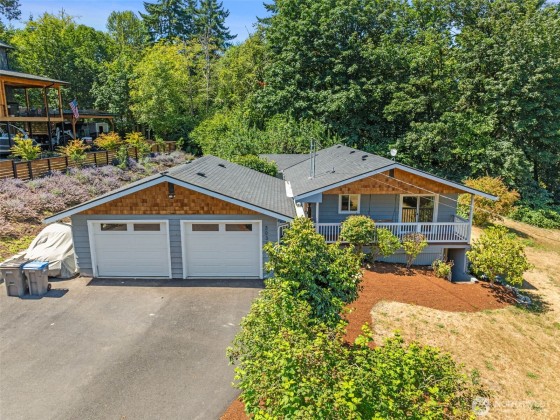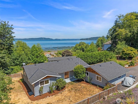 VA Assumable Loan up to $625K at 4% interest! Enjoy stunning harbor views from this fully renovated home on a generous 13,000+ sq ft lot. The main level features 2 bedrooms and 1 beautifully updated bath, while the lower level includes a bedroom w/closet, a large bonus room, and a second full bath, ideal for guests or multi-generational living. The open-concept kitchen shines with quartz counters, white shaker cabinets, stainless steel appliances, and a large island. Bright living spaces with oversized windows bring in natural light and breathtaking views. Recent updates include new windows, doors, mini-split A/C, flooring, water heater, and fresh paint inside. Private beach access. Truly a must see move-in ready home!