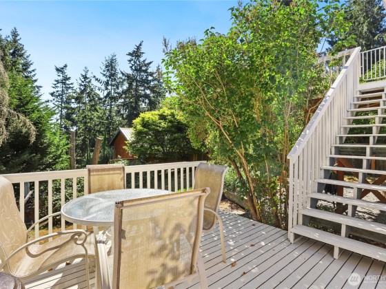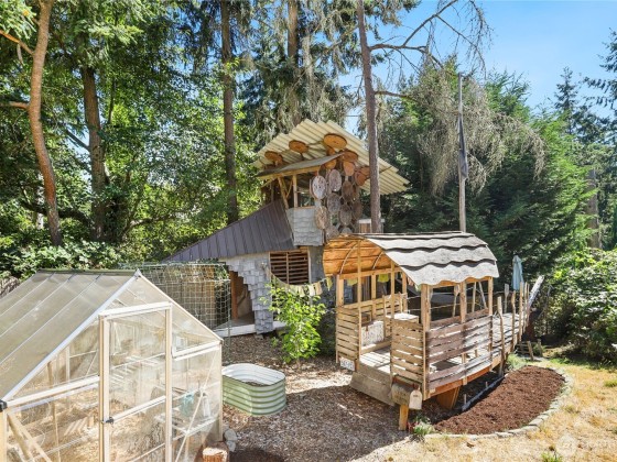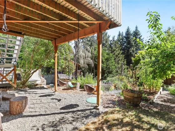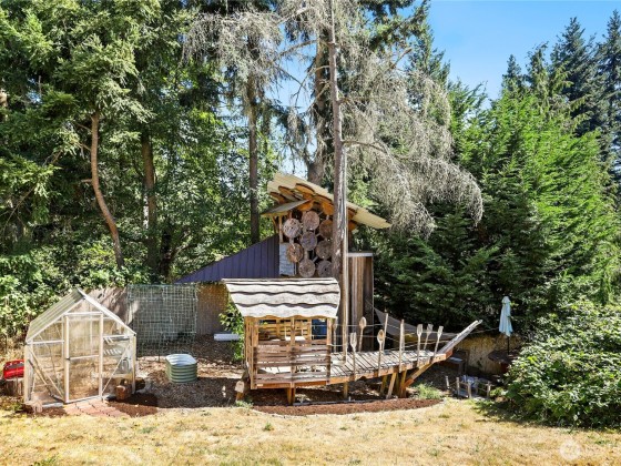 Tucked away in a peaceful island setting, this home invites you to slow down and savor the good life. Sunlight pours through skylights into vaulted spaces, dancing across warm bamboo floors. A crackling wood stove framed by a fieldstone hearth becomes the heart of cozy evenings, while a newer roof offers worry-free living. Step onto either of two decks to breathe in fresh island air, overlooking a backyard where a whimsical playscape and garden await. The adaptable layout suits restful retreats, creative workspaces, or hosting guests. With fiberoptic internet and access to a private beach, pool, and clubhouse, it’s the perfect balance of getaway and connection.