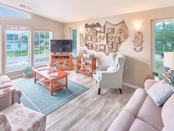 Welcome to this much-loved beach home which comfortably sleeps 10, making it perfect for the whole gang. The upstairs living area is ideal for entertaining—mix a drink at the dry bar and enjoy the natural light streaming through a wall of west-facing windows. Step onto the south deck for easy summer grilling, or laze on the large east deck overlooking the tranquil canal, where you can catch stunning sunrises and enjoy the local wildlife. The beautifully remodeled kitchen features quartz counters, upgraded cabinets, and charming beadboard accents. With a 1-car garage and additional shed storage, there’s room for all your gear. Just steps away from the beach, this is the perfect place to relax and make lasting memories at the Cool Coast!