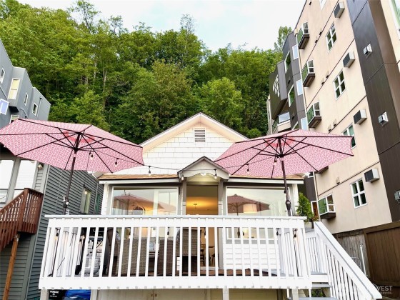 Prime location! The location that you can't beat! This property is just steps away from Alki Beach. Welcome to Alki Beach living! Imagine yourself looking out to the ocean and downtown Seattle’s skyline from the top balcony of your to be built dream home. Preliminary design by Johnston Architects who are known for designing and building high-end contemporary homes. We had an architect plan ready for permit and land surveys, You will enjoy the peaceful and panoramic view of Alki Beach from the deck of existing 2bed 1bath renovated home. Minutes to water taxi, restaurants, and freeway. Bring your buyers for showing and sale.