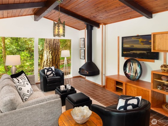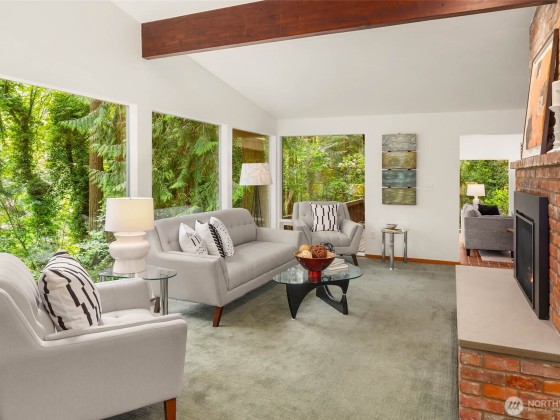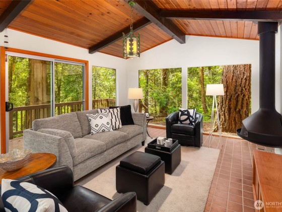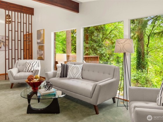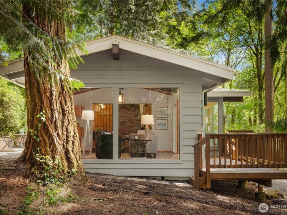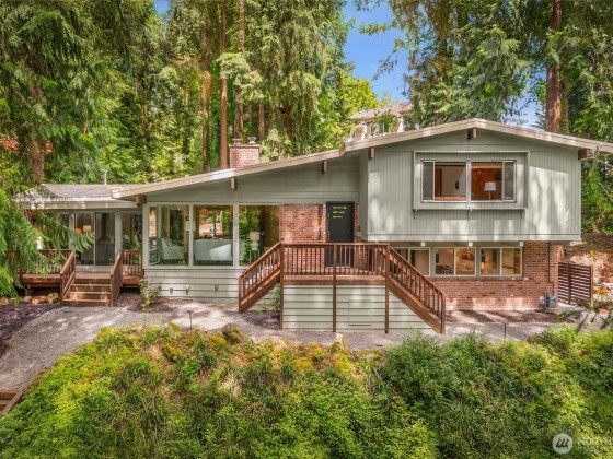 A rare Mid-Century Retreat in the Heart of Bellevue tucked away in a peaceful woodland setting. A true architectural treasure! Built in 1958, it showcases timeless design and craftsmanship with signature features including an expansive open floorplan, rich wood finishes, original brickwork, and dramatic floor-to-ceiling windows that seamlessly connect the indoors with the surrounding natural beauty. Sitting on a serene, shy acre this home offers ultimate privacy and tranquility. A rare blend of classic style and modern convenience, this is for those who appreciate architecture, nature, and location in perfect harmony. Minutes to downtown Bellevue, Microsoft, top-rated schools, and a few blocks to light rail and the vibrant Spring District.