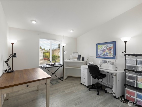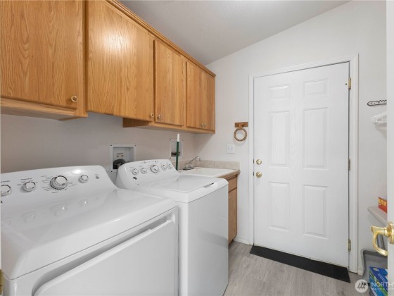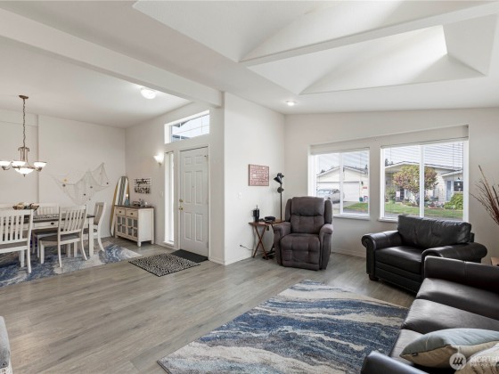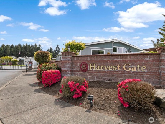 This lovely Chelan model features two large bedrooms and a big den an open and bright living room, formal dining, large kitchen with walk in pantry and a dining nook. The primary suite is spacious with 3/4 bath and walk-in closet. Many upgrades including lovely vinyl plank flooring and newer appliances. New hot water heater too! 2 car garage includes big shop area. Beautiful maintained landscaping and patio. Sprinkler system and property gets a lot of sunshine! Come join the highly sought after 55+ community of Harvest Gate...with clubhouse, gated entry, RV parking and more! Schedule a tour today...you will want to see this great home!