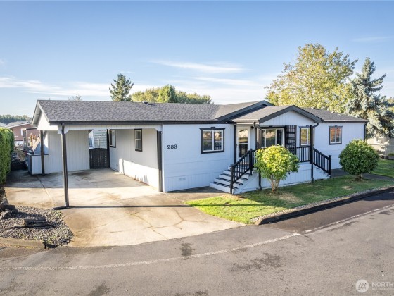 Welcome to this beautifully updated 4-bedroom, 2-bath manufactured home in a desirable no age-restriction community in West Longview! Step inside to a freshly updated interior with an open-concept living space that's perfect for entertaining. Enjoy cooking in the spacious kitchen featuring updated countertops and plenty of cabinet space. The generous primary suite offers a large walk-in closet and a large bathroom with a soaking tub and separate shower. Exterior highlights include newer paint, carport, and a newer roof for added peace of mind. Located in a well-maintained community offering a playground and a community center — perfect for gathering with neighbors and friends. Affordable living with room to spread out — come see it today!