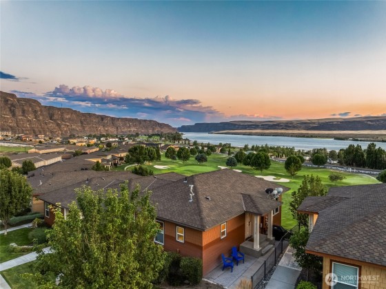 Experience luxury living in this beautifully remodeled daylight rambler townhouse, ideally situated in a highly desirable vacation destination. Overlooking the lush fairways of the golf course & offering unobstructed views of the Columbia River, this home combines elegance with serenity. High-end finishes throughout enhance the modern upscale design.Located within a gated community featuring 5 pools, hot tubs, tennis & racquetball courts, restaurants, coffee shops, boutique shopping & gym—everything you need right at your doorstep. An exclusive opportunity to purchase a stand-alone garage w/the home is also available. Short-term rentals allowed, offering great investment potential or the perfect personal retreat. SELLER FINANCING AVAILABLE!