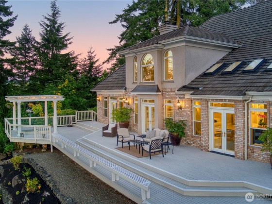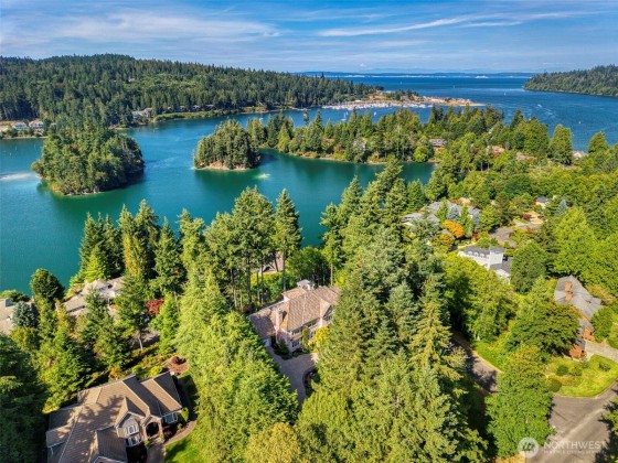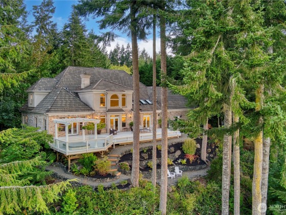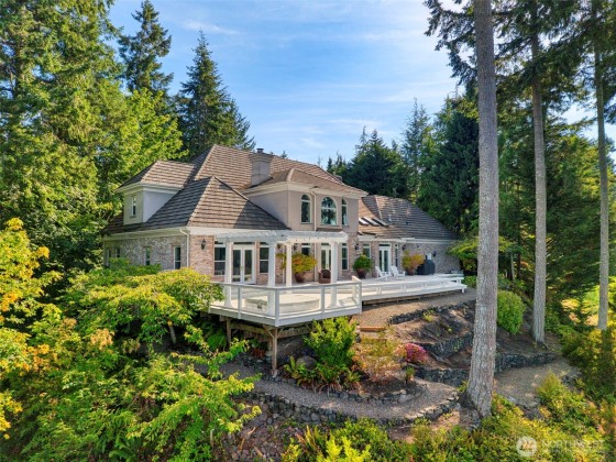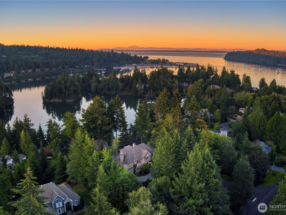 Welcome to this extraordinary Hamptons inspired estate. Designed for the discerning homeowner looking for tranquility and privacy while offering expansive space for entertaining. Elegant gardens and mature landscape surrounds this stately home which boasts private gated access, a tree lined driveway and waterfall feature. Inside this lavish home is a chef-grade kitchen with gourmet appliances, custom cabinets, oversized quartz island and walk-in pantry. The spacious primary suite is located on the main level with a luxurious 6-piece bath, dual walk-in closets and french doors leading to the private deck overlooking the picturesque Inner Harbor. Enjoy the resort lifestyle of Port Ludlow with close dining, golf, marina and club membership.
