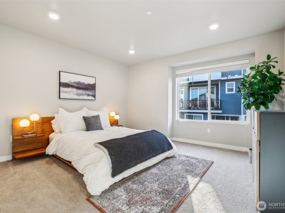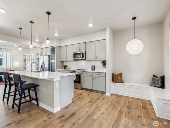1% CLOSING CREDIT! This beautifully designed 2023 Westcott build 3 bed + office townhome combines modern living & convenience in the highly sought-after Braes Park community in Edmonds! The 1st floor features 1 bed & full bath, perfect for guests or multi-gen living. The main floor showcases an open living room & kitchen w/ a large island, quartz countertops & dining area ideal for entertaining. Step outside year round onto the heated covered balcony. The 3rd floor boasts a private office, a spacious primary suite w/ a large walk-in closet & en-suite walk-in shower. The 3rd bedroom also has an en-suite bath & walk-in closet. A/C, 2 car garage, wired for EV, community dog park & playground. Minutes to Edmonds Bowl, I5, Hwy99, & light rail.