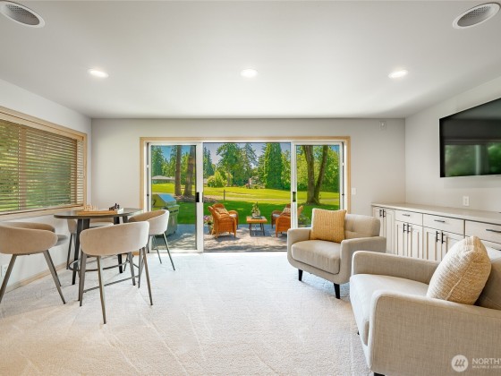 Live your dream lifestyle on the 17th fairway of the renowned Semiahmoo Golf Course, masterfully crafted by Arnold Palmer. This beautifully appointed 3-bedroom home features two full baths, a ¾ bath, & powder room for guests. The main-floor primary suite showcases dramatic vaulted ceilings, filling the space with light & comfort. Recent updates include brand-new stainless steel appliances, fresh interior paint, & plush new carpeting throughout. Whether you're unwinding with a book in the private library or entertaining on the spacious patio with golf course views, every detail invites relaxation & enjoyment. Set on a generous lot & enhanced with thoughtful upgrades, this home seamlessly blends timeless charm with modern elegance.