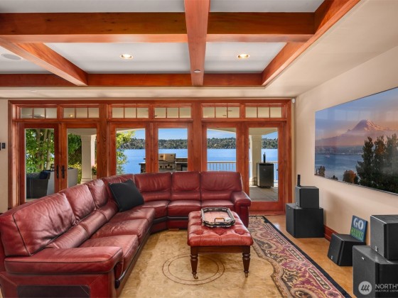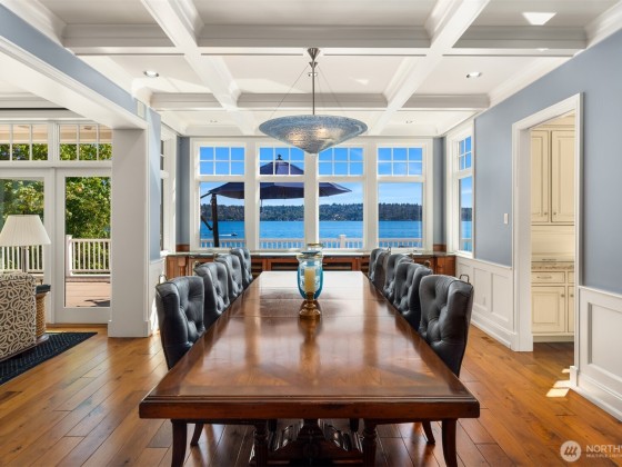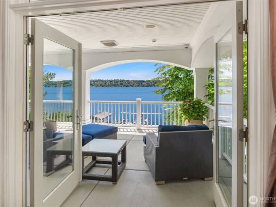 Perfectly set back from the water, this bright spacious home features an expansive lawn and fabulous decks, offering both privacy and exceptional spaces for living and entertaining in style. Every room is enhanced with walls of windows that capture sweeping views of Lake Washington, Cascade Mountains, and stunning sunsets. Spectacular 100’ of waterfront with private covered dock and boat lifts. All 4 bedrooms en-suite with lake views. Primary suite has a separate living room with private balcony. Magnificent craftsmanship, thoughtfully laid out, custom built home including an elevator, separate charming Lighthouse ADU, and 9 car garage space. It is a fusion of sophistication, size, warmth, and sought-after waterfront lifestyle.