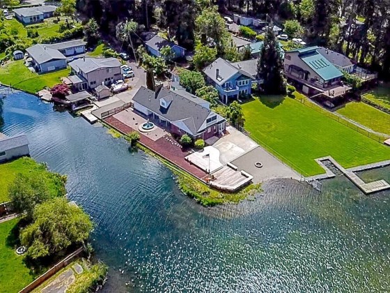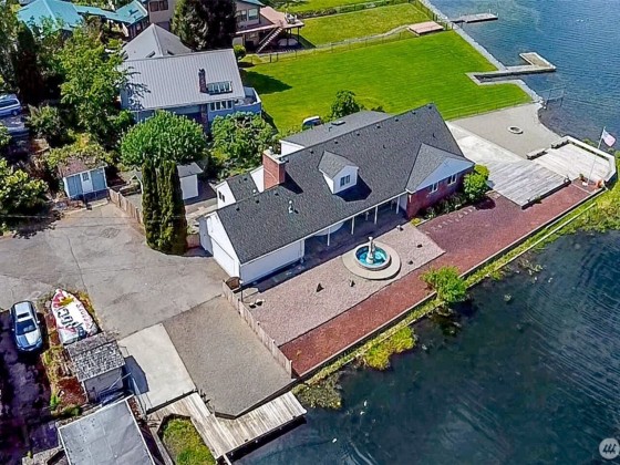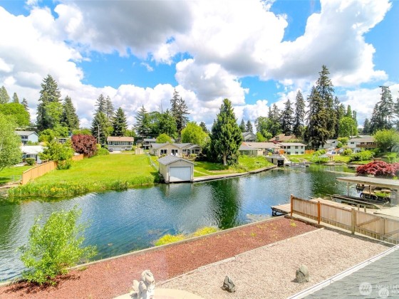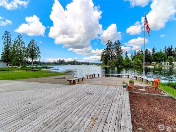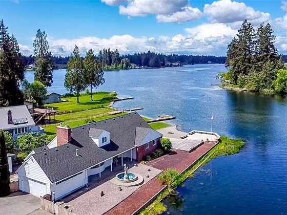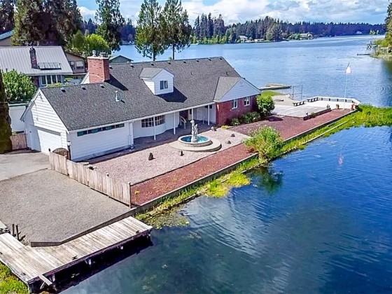Best Priced home on the Lake! Beautiful Spanaway Lake home with 180 ft (+/-) of waterfront!! Approx. 2990 sf w/4 bdrms & 2.25 baths. Lake views from almost every room. Primary bedroom has Gas FP, walk-in closet & lg full bath. Sunken Living room has Gas FP & lg Bay Window. Spacious kitchen has dbl-oven, island gas range & lots of cabinet space! Dining rm w/gorgeous Chandelier. Family room w/Wet Bar, built-in China Hutch & awesome lake view is perfect for entertaining! HW Floors thru-out most of main level. Separate Utility Rm, full 2 car Garage & Storage Shed/Shop. Private dock & Boat Slip, large Patio, private gravel beach w/Fire Pit & 2 large Decks. Partially fenced landscaped yard w/Fountain, garden space & no lawn to mow! Bring Offers!!