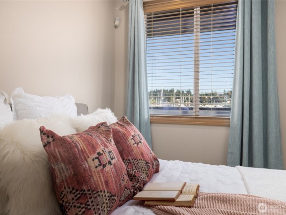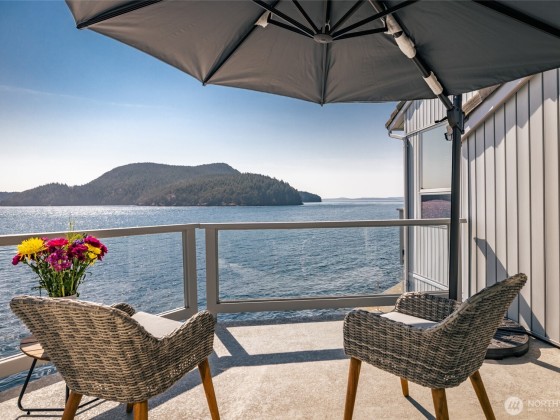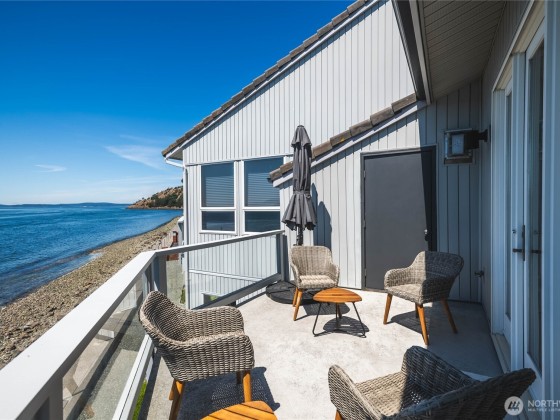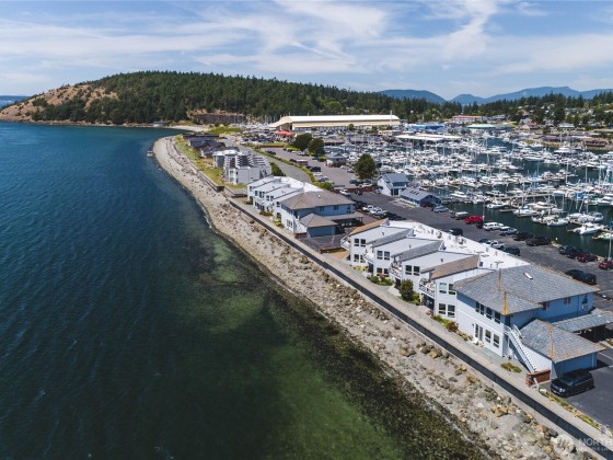 Waterfront Living large! Remodeled in 2019, this exquisite 2-bedroom condo by Burrows Bay offers unending views, sunsets, wildlife and many special features. Quartz countertops, LED lighting, skylights, new flooring and a lot of extra storage. With nine-foot ceilings, a private deck with storage, enclosed garage (with locked storage unit) and an additional outside parking space. Skyline amenities include tennis and pickle ball courts, waterfront parks, and clubhouse. The best Anacortes has to offer! These units don't come on the market often, don't miss this opportunity!