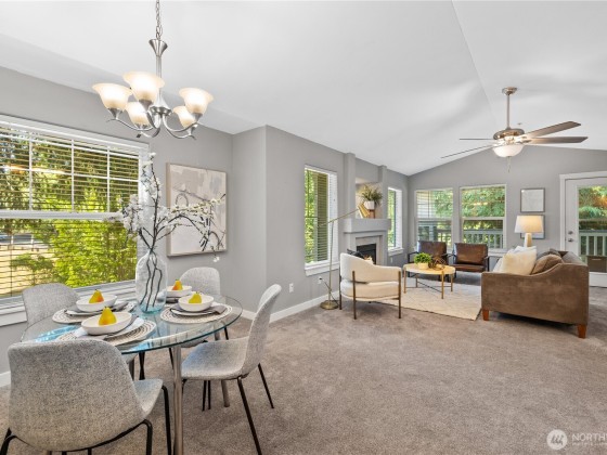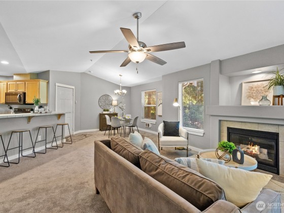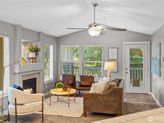 Gorgeous 3-bed, 2-bath condo in Redmond! This light-filled top unit condo features an open flr plan, gas frplc & private balcony perfect for relaxing & entertainment. Spacious kitchen connects seamlessly to dining & living areas. Primary suite offers en-suite bath & walk-in closet, while 2 additional bedrooms provide space for guests or a home office. Top of the line extra padded carpet stain-resistant. Includes 1-car garage w/extra storage + 2nd open spot. Located in well-maintained community just min from Microsoft, golf course, Redmond Town Center, multiple parks & trails. NO rental cap, fantastic option for both homeowners & investors alike! Easy access to dining, shopping centers & commuter routes. 50yr warranty 2019 roof, healthy HOA!
