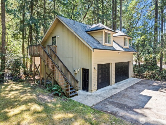 Nestled on a lovely 2+ acre corner lot in the established Colvos Passage area, this PNW treasure presents a rare opportunity. From the grand entryway, a palatial layout seamlessly unfolds; elegant comfort awaits at every turn. Discover the exquisite dining room w/soaring ceilings, well-appointed kitchen w/walk-in pantry alongside sunny dining area, & generous living room w/idyllic views. Find a haven of rest & rejuvenation in sprawling primary suite w/water views & luxe ensuite bath. ADU includes 2nd kitchen & provides flexibility galore! Shop & garage offer total of 6 covered parking spots. Patio & deck w/hot tub surrounded by lush greenery—your private oasis beckons! Just a few min to Sunrise Beach Park & 5 min to Downtown Gig Harbor.