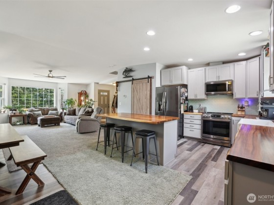 Embrace the serenity of mountain living with this beautifully updated 3-bed, 2-bath home nestled on over 5 private acres in Cle Elum. Thoughtfully reimagined with a modern open layout, it features a sleek new kitchen, updated flooring, appliances, heat pump, wood stove, and a spacious new deck—perfect for savoring morning coffee and sweeping views. Just an hour from Seattle and minutes to Snoqualmie Pass, this retreat offers year-round adventure: ski, ride, hike, fish, or simply unwind. Bring your Toys and your spirit of adventure—this is where nature meets comfort.