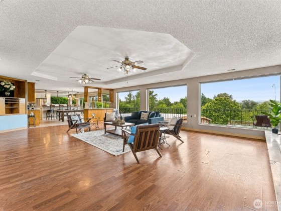Beautiful view property overlooking Puyallup that has enough sq footage for a large or multigenerational living and is situated on 1.75 acres w/ access to park trails below. With a custom built 6-8 person sauna, in ground saltwater pool, hot tub hookup and fire pit you will retreat into a private dead end rd. Upstairs features a newly remodeled gourmet kitchen that flows into the dining room and massive living room. Separate large rec room and a flex rm along with 3 Lg BD upstairs. 1 bdrm, large office, sauna, and a 2nd kitchen/lv rm downstairs. Huge yard with sprinkler system, Solar Panels cover majority of electric bill. 90' covered balcony allows for relaxing with views of the valley. 3 car garage, separate workshop, and tons of storage!