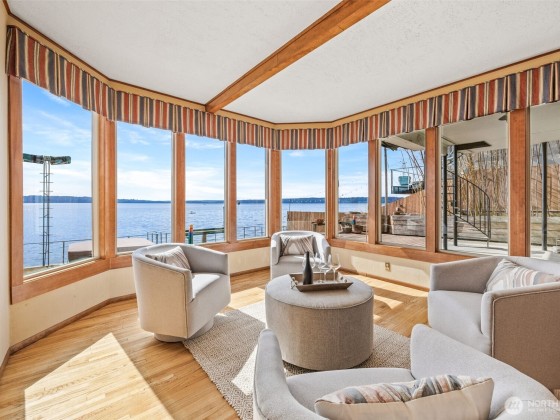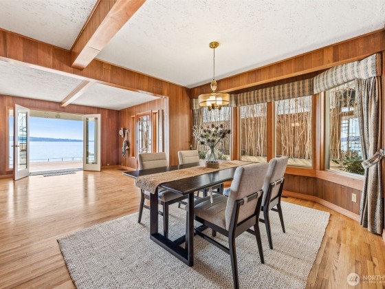 Welcome to this waterfront retreat in Three Tree Point! It's like living on a houseboat, only better. 40' of bulkhead beachfront with stunning views out to Puget Sound, top of Mt. Rainier and the Olympic Mountains! Entertain on the massive patio and deck combination with steps down to your own beach. Wide open entry with French doors bringing the outside in. Inviting formal living room with gas fireplace and adjacent sunroom, offer separate living areas with plenty of windows to take in the views. Drive-up 3-car garage with finished rooms above for home office, shop, exercise studio and more! Would make and ideal ADU/guest apartment (currently not plumbed for water/sewer). Enjoy year-round comfort with central A/C and gen. ready.