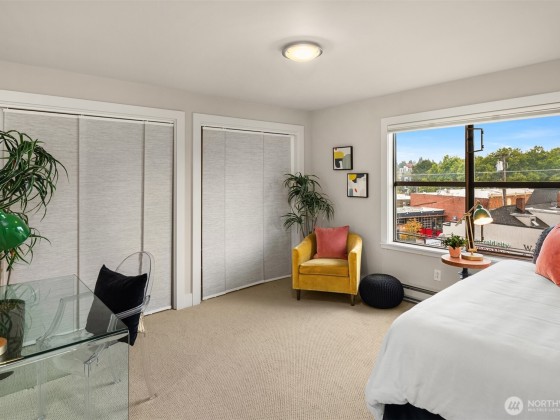 Step into this rare top-floor corner unit, your gateway to a lifestyle filled with convenience and style.Enjoying leisurely Sunday mornings with a steaming cup of coffee while soaking in the stunning light and bright vistas from your expansive windows. Each room is a blank canvas, ready for your creative touch to transform it into a masterpiece. Just a hop, skip, and a jump away from the bustling Green Lake area, this neighborhood is a paradise for food enthusiasts, fitness fans, and culture aficionados alike. Dive into the vibrant Seattle scene with a home that offers more than just a place to unwind—it's a thrilling lifestyle adventure waiting to happen! 2 parking space, one garages one exterior uncovered.