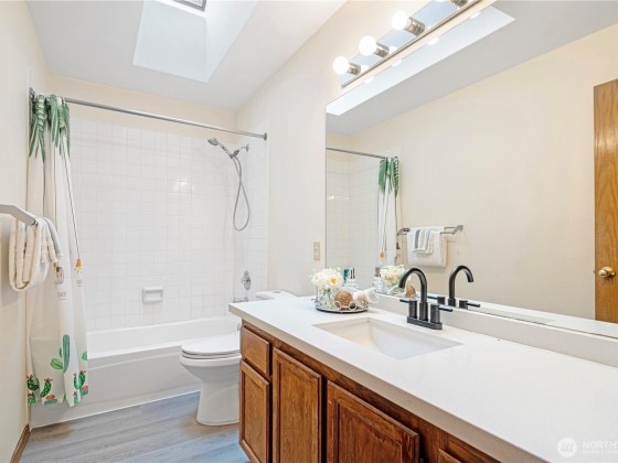 Welcome to this charming 2-story home in Newcastle’s Milepost neighborhood, featuring a huge extended yard and no HOA in the award-winning Issaquah School District! Move-in ready with fresh exterior paint and new granite bathroom counters. The main floor offers great flow with living, family, dining rooms, kitchen, and breakfast nook. Step out to the deck overlooking the private yard and greenbelt. Upstairs includes 3 bedrooms, a spacious primary suite with 5-piece bath, plus laundry. Two bathrooms feature skylights that fill the rooms with natural light. Close to parks, top schools, and an easy Bellevue commute!
