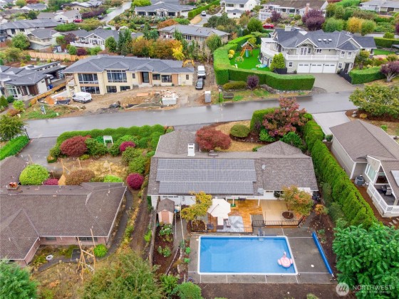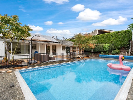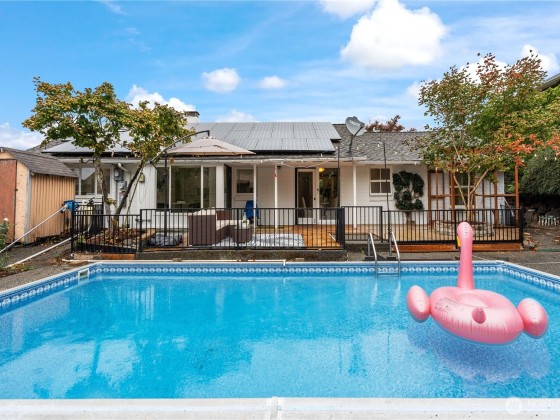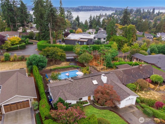 Welcome to Vuecrest—one of Bellevue’s most desirable neighborhoods where timeless charm meets modern convenience. This beautifully updated rambler offers effortless living with newer quartz kitchen countertops, updated bathroom fixtures, fresh paint, and comfortable floor heating for year-round warmth. Enjoy an ideal lot with a large, lush yard, sparkling renewed swimming pool, and spacious new deck—perfect for outdoor living. A paid-off solar power system means minimal electric bills, complemented by new attic insulation and newer home appliances. Zoned for Medina Elementary and just minutes from world-class shopping, dining, and cultural attractions. A peaceful retreat just 10 minutes to downtown Seattle.