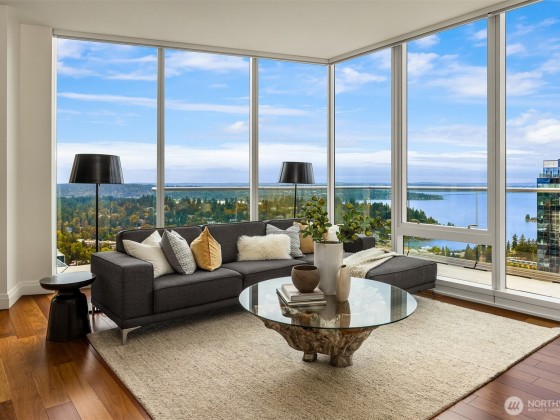A high-performance life deserves a high-performance home — one that can only be found at the iconic Bellevue Towers. Touch the sky from the 41st floor and surround yourself with sweeping views of Lake Washington, City Skylines, Mt.Rainier and the Olympic Mountains. Expansive spaces, 10-foot ceilings and floor-to-ceiling windows flood the home with brilliant light. A dazzling kitchen features Wolf appliances, custom cabinetry, dual wine fridges and a butler’s pantry. Enjoy 3 premium parking w/EV option & large storage. 24-hour concierge, luxury fitness center & spa, theater, lounges, pet retreat and a half-acre garden with cascading waterfalls. Don’t miss this rare opportunity to own a one-of-a-kind penthouse at the revered Bellevue Towers!