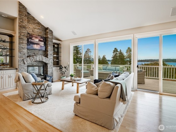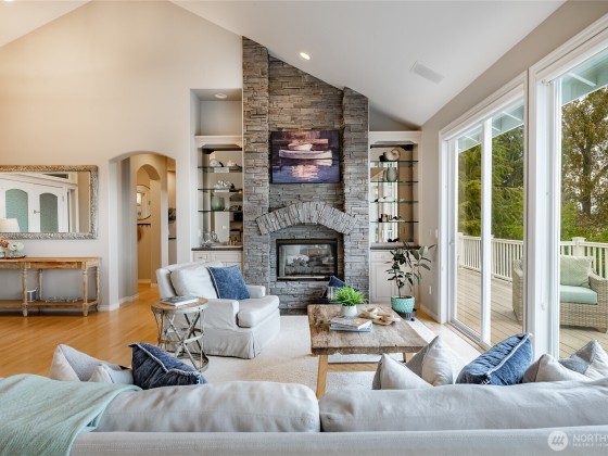 Perched above Drayton Harbor with sweeping city, water, & mountain views, this lovely custom home is filled with thoughtful upgrades. Main-floor living features a private primary suite w/ spa bath, sauna, & dual closets, plus dedicated office w/fireplace. Vaulted living room frames the view w/ stone fireplace, flowing into a spacious dining room & chef’s kitchen w/ walk-in pantry. Downstairs-two complete guest suites, a large bonus room w/ second kitchen, abundant storage, & additional office offer flexibility for every lifestyle. Peace of mind comes w/ all-new essentials—roof, interior/exterior paint, air conditioning & more. With a dream garage storage system, lush landscaping, & privacy, this home is move-in ready & designed to impress.
