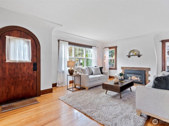 Charming 1927 English Tudor Revival adjacent to UPS, timeless character meets modern comfort. The home showcases hardwood floors, graceful coved ceilings, and a striking Batchelder tile gas fireplace. The inviting “gather here” kitchen blends vintage charm with thoughtful updates. "Peace of mind" system upgrades including furnace, sewer line, plumbing, and electrical. Generous main living areas and a versatile floor plan provide flexibility with a main-level bedroom and full bath, an upstairs primary suite, and a lower level with bonus space, bedroom, bath, and storage. Outdoor living is equally delightful with a covered back patio. A rare opportunity to own a home of enduring character in a prime location.