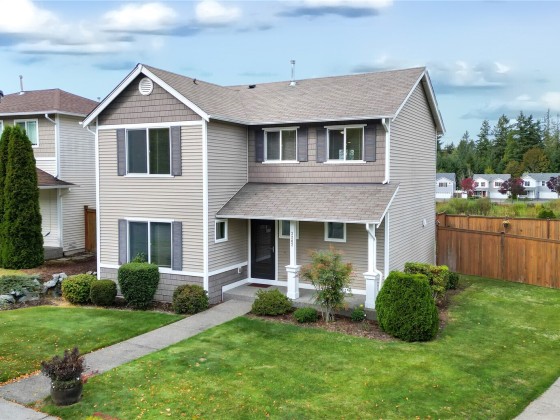 Meticulously maintained one-owner home on a spacious corner lot! This 3-bedroom plus bonus loft, 2.5-bath home features an open, functional layout, perfect for everyday living. The kitchen shines with quartz counters, stainless appliances, and a newer dishwasher and microwave. Enjoy a covered front porch, downstairs laundry hookups, and a yard ideal for pets, play, and stunning sunsets. Backing to a retention pond and just 1 block to Chief Leschi Park with new playgrounds, this home offers both convenience and charm. Take a stroll on the miles of nearby trails. Lots of parking space behind the 2-car attached garage. Plus easy I-5/JBLM access.