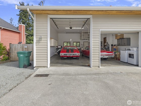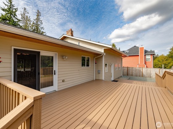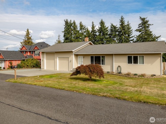 Welcome to this inviting 2-bedroom home in Mount Vernon with NO HOA! Find fresh paint inside and out, new flooring in kitchen and main living spaces. Enjoy peace of mind with central air, Anderson windows, 2024 hot water heater, new soffits, upgraded receptacles and switches, plus smart lighting for convenience. Fully finished garage is insulated, heated, and offers soaring 12' ceilings to allow RV parking, an additional half bath and plenty of functional space. With a fully fenced backyard with mature trees offering privacy, entertain on the expansive deck, already wired for a hot tub. RV gate and parking. Move-in ready—this home has it all! Located in a quiet neighborhood, close to I-5 & local amenities. Your Mount Vernon retreat awaits!