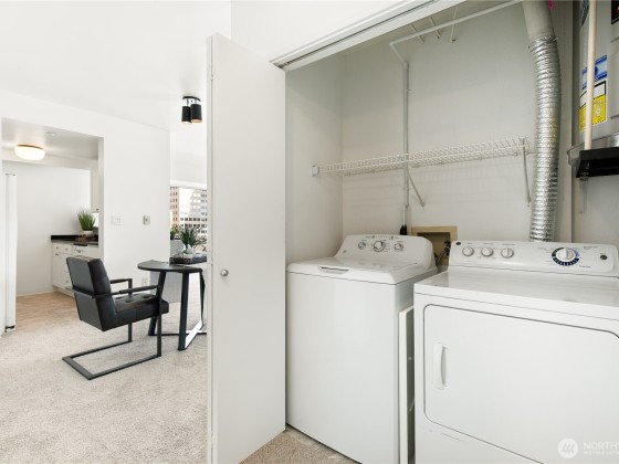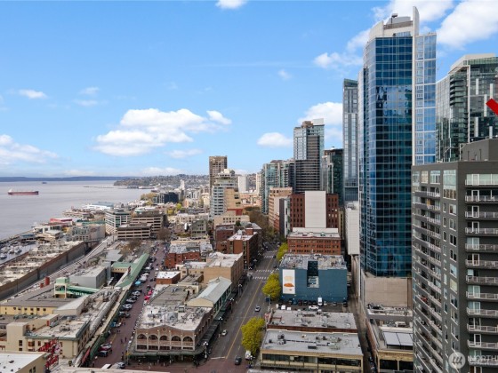 Live in the heart of Seattle near Pike Place Market, Miner's Landing, and the new waterfront in this stylishly updated 2 bed, 2 bath condo with city skyline and partial water views. Inside, enjoy brand new carpet, fresh paint, a newly updated kitchen, in-unit laundry, and en-suite bathrooms in both bedrooms. Full-service building includes 24-hour concierge, indoor pool, fully equipped gym, rooftop deck with panoramic views, secure garage parking, and available guest suite. Well-managed HOA with no special assessments, no rental cap, and short-term rentals allowed—a rare find! Perfect as a primary home, second home, or income property in one of Seattle’s most iconic neighborhoods.