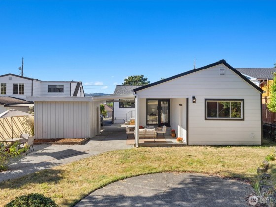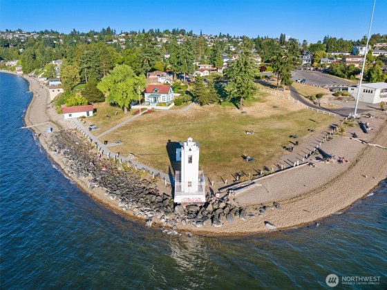 Welcome to this beautifully updated one-story home in desirable Browns Point! Upgrades include new siding, roof, furnace, mechanical gate & SS appliances. Savor the sunset & Sound views from the covered front porch. Inside, the light-filled living room boasts natural hardwood floors & a fireplace w/ custom feature wall & tile surround. Enjoy peek a boo views as you entertain in the dining area that flows into the kitchen w/ white cabinetry, quartz counters, slate flooring & center island. Primary suite houses a ¾ en suite w/ dual vanity & fully tiled walk-in shower. Utility room provides ample storage & convenience. Covered patio & terraced backyard create private oasis w/ ADU/DADU potential. Near BP Lighthouse, beach access & boat launch.