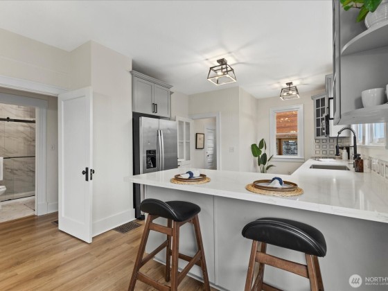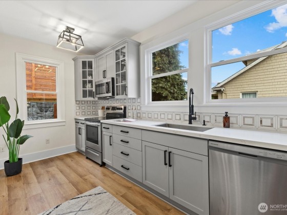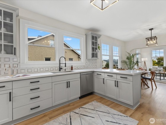 Welcome to this beautifully remodeled classic 1911 home in Queen Anne. The large kitchen is bright with ample natural light, counter seating and open to the dining and living areas. The main floor has 2 bedrooms plus bath with a walk-in shower. Looking for AirBnB income? This property features a second dwelling downstairs (ADU) complete with everything needed for short term or long term guests or tenants (even a second laundry!). Enjoy a beverage on the front porch or covered patio out back w/built-in BBQ - which provide fantastic outdoor living options. Plenty of driveway off-street parking. Outstanding location with plenty of transit options. Investors, owner occupants - this one is special. Don't miss out!