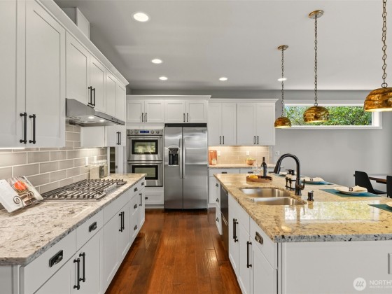Discover this inviting home that offers generous living space. This home lives large with a spacious great room that flows seamlessly from the kitchen and dining area, creating the perfect entertaining space. If you like to cook, you will love the Fisher & Paykel double oven and 2 dishwashers. A bonus room and office/den provide flexibility for work, play, or relaxation, while large windows fill the home with natural light. Step outside & enjoy the covered patio w/outdoor fireplace ideal for gathering with friends. Green thumbs will love the abundance of vegetable gardens, and the peaceful location at the end of a cul-de-sac offers both privacy and charm. Ideal location that is close to I5, Hwy 204, Costco, and shopping/dining.