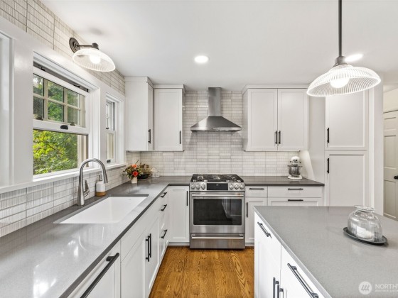 Charming Cape Cod in the heart of Wedgwood blends timeless character with elevated modern updates. Step inside to find a luxury kitchen remodel showcasing Andersen E-Series windows, Ann Sacks designer tile, upscale lighting, and a classic fireclay sink — all curated for both beauty and function. The fresh design complements original details, while a wood-burning fireplace creates a cozy retreat for cool PNW evenings. Outside, dine al fresco overlooking the lushly landscaped gardens that are more than just beautiful — they're a thoughtfully designed natural habitat for birds & pollinators, offering year-round color & connection with nature. A rare blend of craftsmanship, comfort, and charm in one of Seattle’s most beloved neighborhoods.
