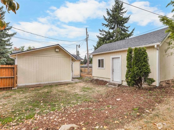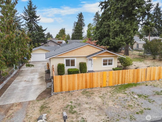 Charming rambler on an oversized, fully fenced lot in East Tacoma. Thoughtfully updated with cherry cabinets, stainless steel appliances, fresh paint, and vinyl windows. All buildings feature brand new roofs (2025) with transferrable warranty. Enjoy an oversized 2-car garage with workshop, a detached shop/storage, and a wide concrete drive for ample parking. The garage with it's own meter, was once an ADU-truly rare! Recent upgrades include new privacy fencing, plus washer, dryer, stove, and water heater providing peace of mind for years to come. Just minutes to Wapato Park's lake, trails, and picnic spots, with shopping dining, JBLM, schools, and easy freeway access close by! You don't want to miss out on this gem!