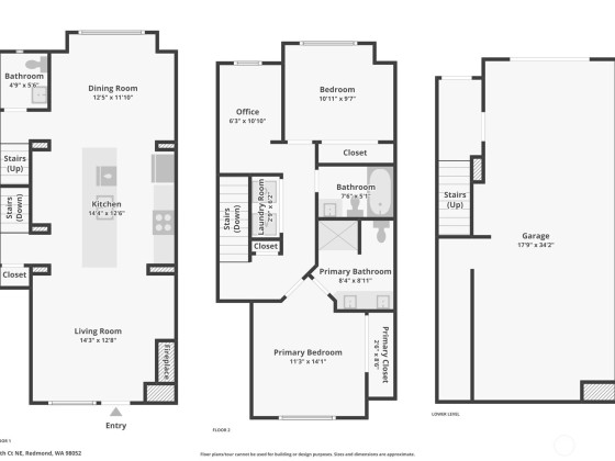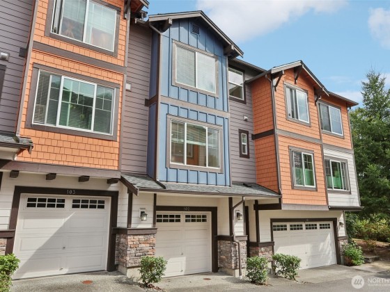 Location, location, location! DT Redmond convenient to local shops, restaurants, RTC, Bella Botega and more. Freshly painted interior with brand NEW carpeting & hot water tank. This 2 bedroom townhome with den located in Villas at Mondavio next to the Sammamish River trail with main level entry has family room and fireplace, open kitchen w/ SS appliances and lots of cabinets, dining room, and a 1/2 bath. Beautifully updated with modern finishes throughout, spacious primary suite with large closet & spacious bath. 2nd bedroom with ample closet space, another full bath & laundry room complete the upper floor. 2-car tandem garage. Low HOA dues include water/sewer/earthquake ins.