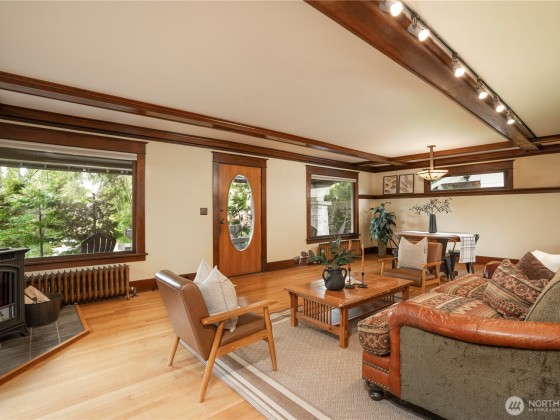 Ideally located near the heart of Proctor District & just steps from coffee shops, dining, boutiques & cultural hotspots this home is perfect N Tacoma living! This Craftsman's wide front porch invites you to come & sit awhile. Beautiful front door draws you in & the original woodwork, plate rail, & box-beam ceiling says this is HOME. Kitchen floor is Marmoleum. Refinished hardwood & fir floors + stairs. Enjoy an abundance of natural light from the Half-moon windows gracing two bedrooms. Lovely backyd with room for gardening or playing. Plumbing & electrical have been updated; newer sewer line & water line for worry-free living. Originally built as a studio, the newer garage with EV charging has additional parking on parking pad. Charming!