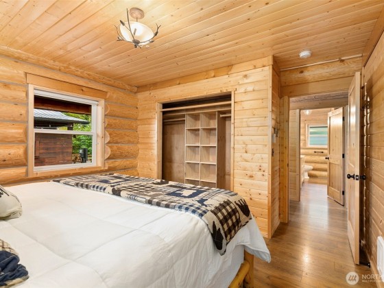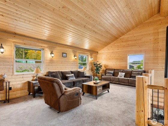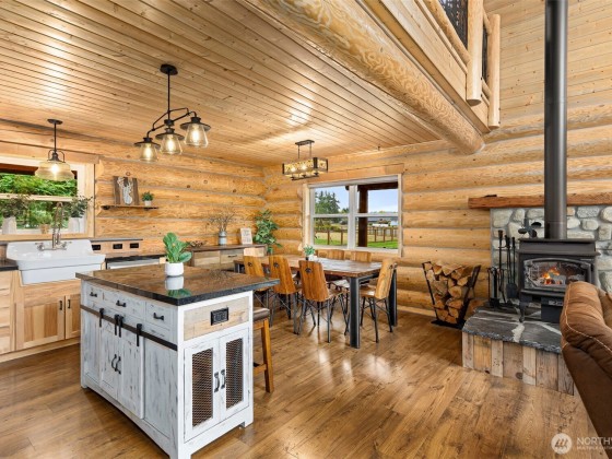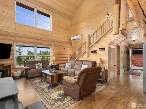 Mountain View Log Home built by NorthWest Log Homes, offering the perfect balance of cabin warmth & modern comfort. The great room showcases soaring 25’ vaulted ceilings, a cozy fireplace, and abundant natural light throughout. The kitchen features stainless steel appliances, while large bedrooms and thoughtful touches across every space create a welcoming retreat. Situated in the Olympic Rain Shadow, enjoy breathtaking mountain views and the peaceful sound of McDonald Creek along the east side of the property. The property includes a full RV hookup and parking, plus a versatile shop with garage parking, 220V power, and room for entertaining. Conveniently close to Sequim, Port Angeles, lavender farms, the Olympic Discovery Trail, and more.