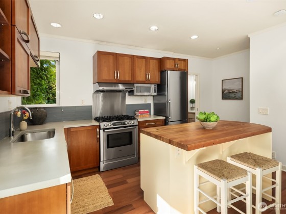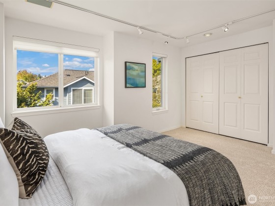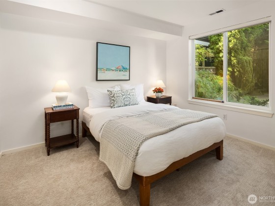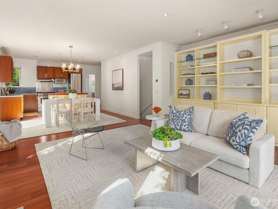 In the heart of Madison Park, near the beach, tennis courts, shops & cafés, this rare 3-bedroom townhome blends refined interiors w/ everyday ease. Light-filled spaces feature Tigerwood floors, tall ceilings & custom built-ins. The main living area opens to an eastern balcony for morning sun. The kitchen offers a large island w/ clever storage. Upstairs, the primary suite enjoys 2 custom closets, ensuite bath & water views, alongside a 2nd bedroom & full bath. The entry level hosts a 3rd bedroom, bath, laundry & garage. Central A/C, whole-house clean air & water filtration, landscaped yard. New carpet, fresh paint. Elevated living in one of Seattle’s most desirable neighborhoods. No HOA’s!