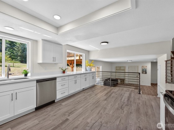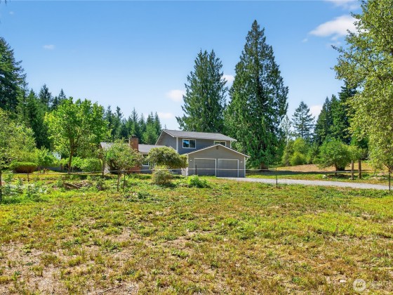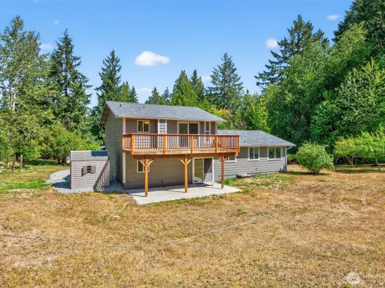 Yelm – 5.78 Acres – Discover this freshly, updated home, offering both privacy and modern comfort. Inside, you’ll find freshly painted interior, new vinyl plank flooring & plush carpet throughout. The living room features a cozy wood burning fireplace as its centerpiece, perfect for gathering. The kitchen and bathrooms have been upgraded with stunning quartz countertops, new hardware on cabinets & stainless steel appliances in the kitchen. Light fixtures and railings have been tastefully updated, adding a modern touch to the space. Enjoy outdoor living on the newer deck, overlooking the expansive property. Move-in ready and perfectly situated, this property blends rural charm with fresh, stylish upgrades.