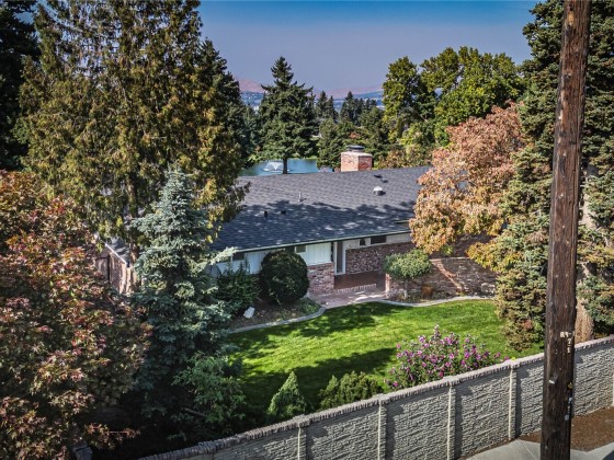 Located on Country Club Golf Course with panoramic mountain views, this mid-century modern home offers stylish one-level living with 3 bedrooms and 2.5 baths. Features include hardwood floors, an updated kitchen, several built-ins, and a spacious primary bedroom with a large closet. Recent improvements in 2025 include a new roof, gutters, dishwasher, and microwave. The partially fenced yard features a hot tub perfectly positioned to take in the views, plus a basement for extra storage and plenty of off-street parking. A perfect blend of character and modern comfort in a sought-after setting.