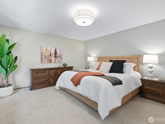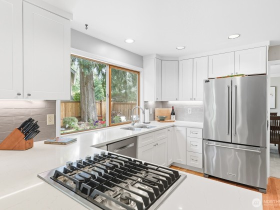 Welcome home to this meticulously maintained Buchan home in Sammamish! Offering a timeless floor plan with formal living & dining rooms, a beautifully remodeled kitchen, and a versatile main-floor bedroom/office. The inviting family room with fireplace is perfect for gatherings or everyday living. Upstairs you’ll find an oversized primary suite w/walk-in closet & updated ensuite plus 2 additional bedrooms. All bathrooms have new quartz countertops & updated fixtures. This floor plan has a rare bonus room providing endless options: gym, media room, or potential ADU! Ample storage, 2-car garage & A/C. Fully fenced corner lot showcases mature landscaping & even an apple tree! Close to parks & top-rated schools, this is Sammamish at its best!