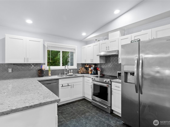 This beautifully refreshed 5bed/2.75bath has all the features you want in your new home. Including new siding & paint, tiled entry, kitchen, and baths and a stunning fireplace. Enjoy BBQ's on the deck or host backyard parties in the private back yard. Primary bedroom suite offers a modern walk in shower with glass doors. Fresh light grey paint, white wood trim, brushed nickel hardware, updated lighting add modern touches throughout. 2 car garage with EV/220 outlet. Perfectly located for easy commutes, close to Light Rail, Lake WA, schools and the airport!