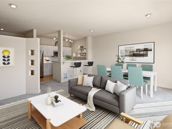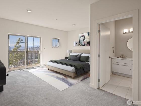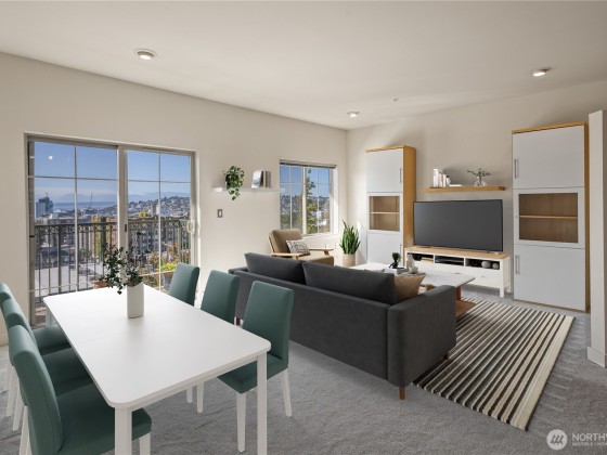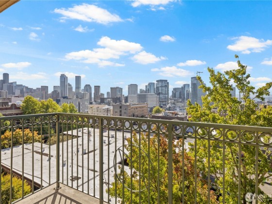 A rare 3 bedroom Penthouse unit on top floor comes w/3balconies +4 parking spaces!, & high ceilings! Sweeping West facing, 180 degree views of mountains, sound, bay, ship canal, city, & Space Needle! This light filled, modern, 1-level unit has all the amenities, space to spread out +w/dryer in unit. The HOA board approved adding hardwoods, A/C mini-splits & is figuring how to add EV chargers. One of the most walkable locations! Light rail station is a five minute walk! Secure garage & lobby entrance. No rent cap & pet friendly. Seller pre-inspected...ask me for it. Can do your own if you want. Secure bike storage. Rent for parking spaces get $180-$250/month; must be people living in building. Extra $$$ if you do not need all 4 spaces.